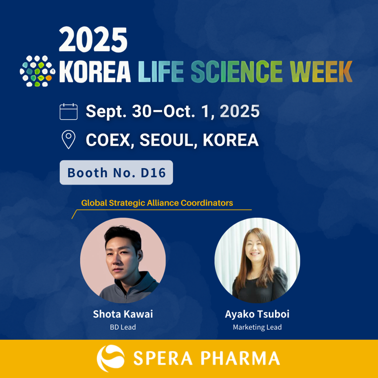 スペラファーマ株式会社は、2025年9月30日(火)~10月1日(水)に韓国ソウル のCOEX(コエックス・コンベンションセンター)にて開催される「KOREA LIFE SCIENCE WEEK 2025(KOLS2025)」に出展いたします。